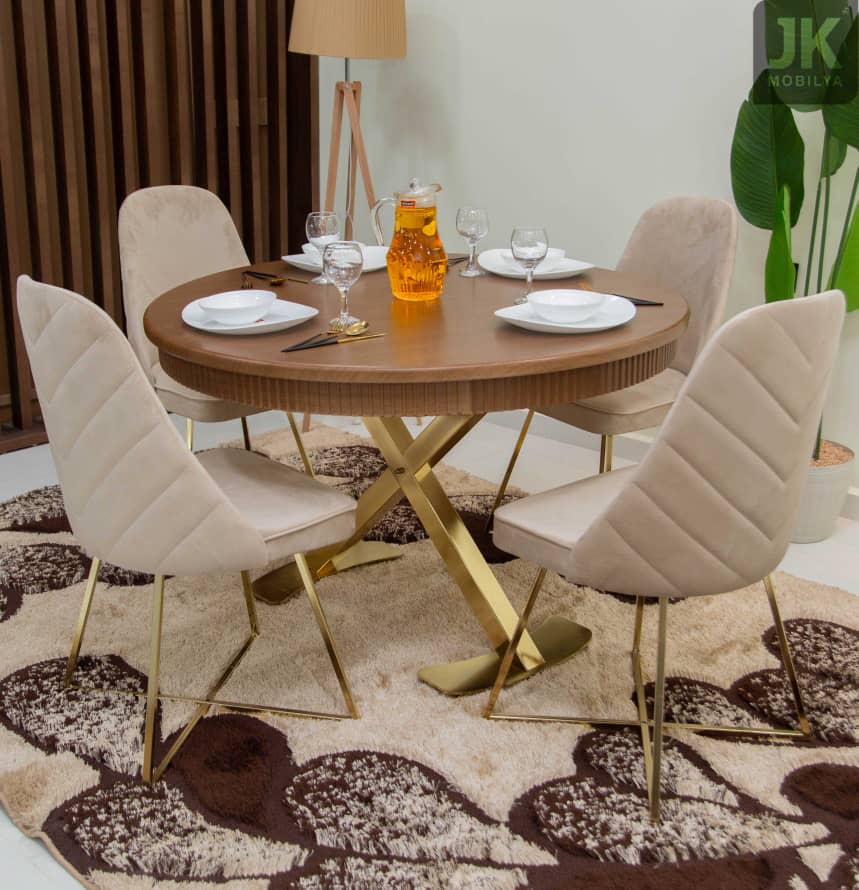 Table Ronde Vacoume Marron 4 chaises